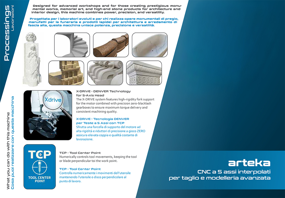 Designed for advanced workshops and for those who create high-quality products from quarry blocks and high-end furnishings, Arteka combines power, precision and versatility.